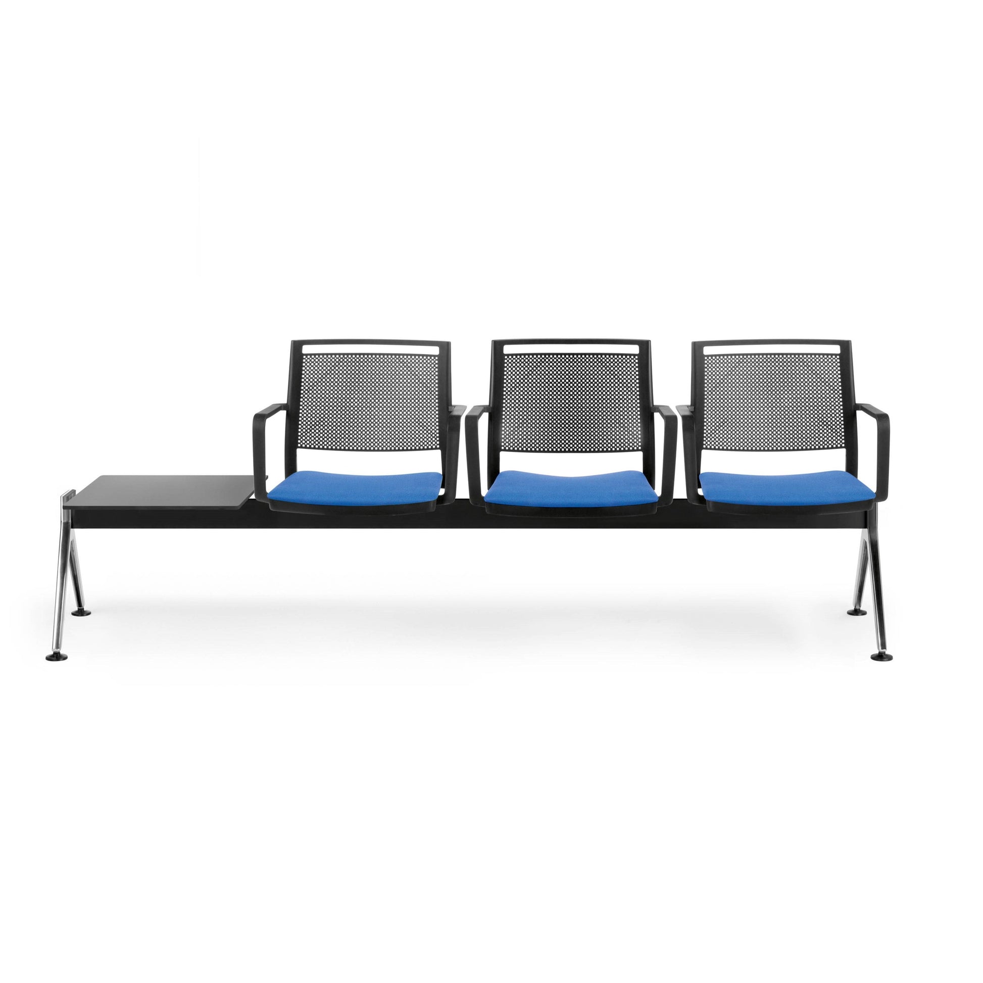 A gama incorpora uma opção de assentos em viga concebidos para salas de espera, passarelas, receções, etc. A sua estrutura é composta por uma estrutura de aço e pernas de injeção de alumínio disponíveis em alumínio polido ou acabamento preto. Este assento em viga pode ter um máximo de cinco assentos, e também pode integrar mesas de escrita ou braços de polipropileno como na opção de cadeiras fixas, por exemplo. O assento em viga Kool é a opção que expressa o coletivo e o moderno.