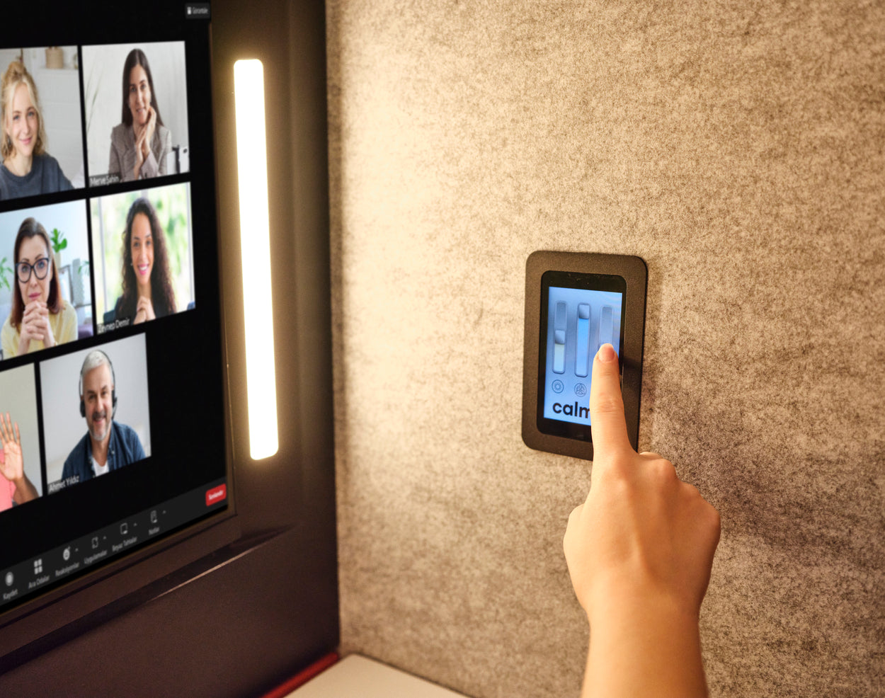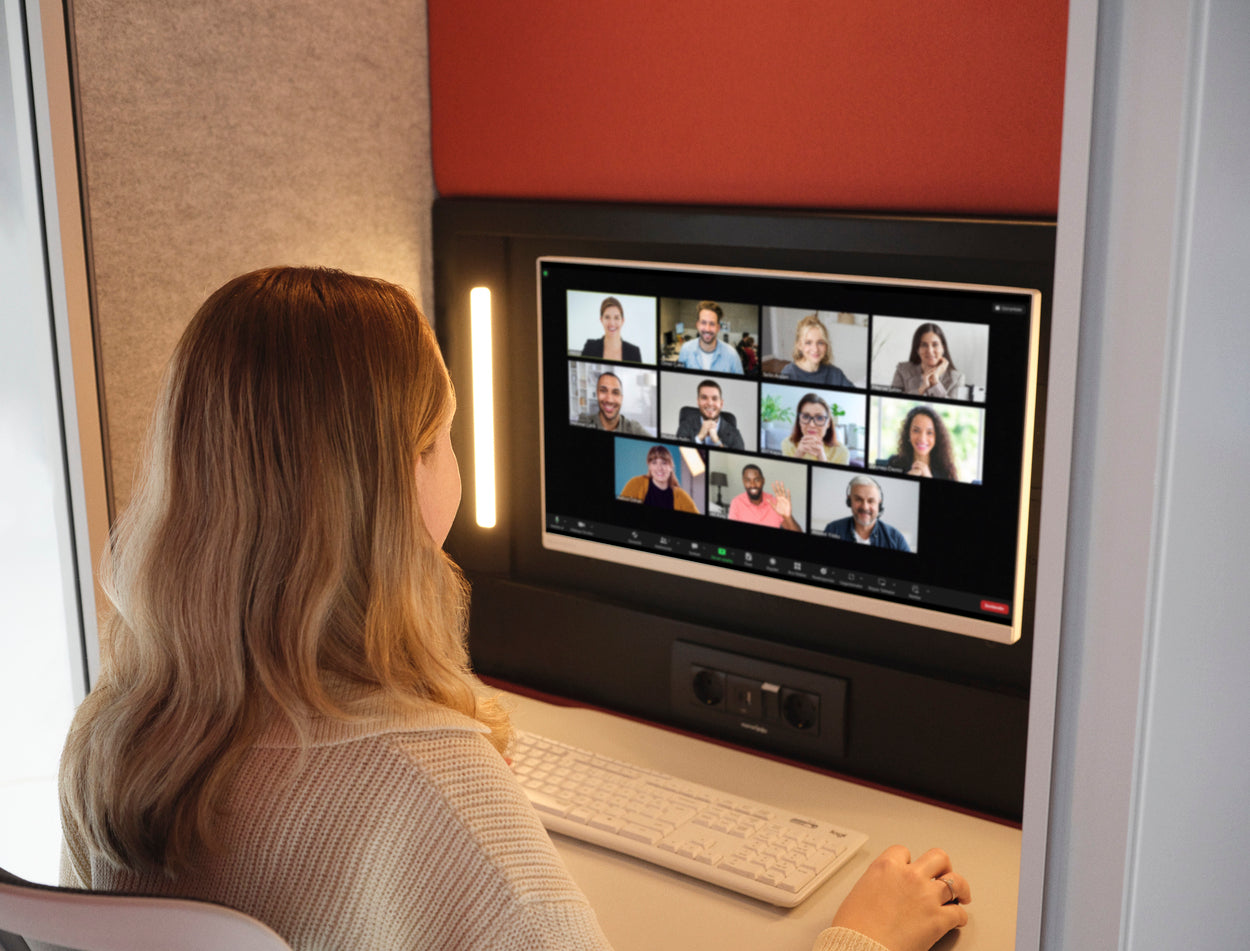 Equipped with dimmable 2700K LED lighting, Calma For U offers a warm, pleasant light, ideal for high-quality video conferencing. Integrated front lighting ensures the user is always well-lit, improving presence during video calls.