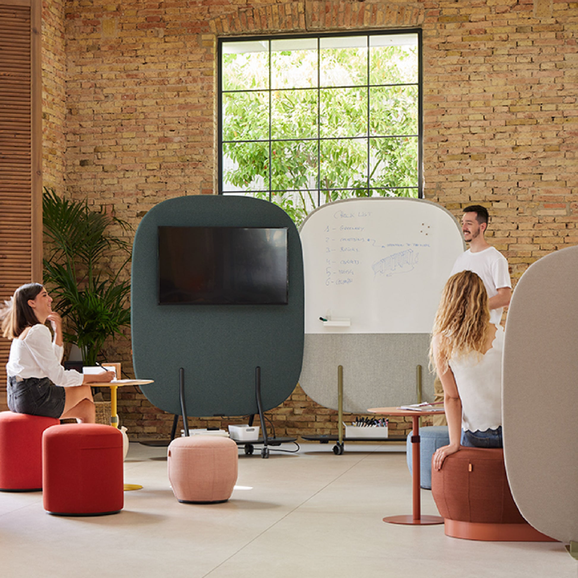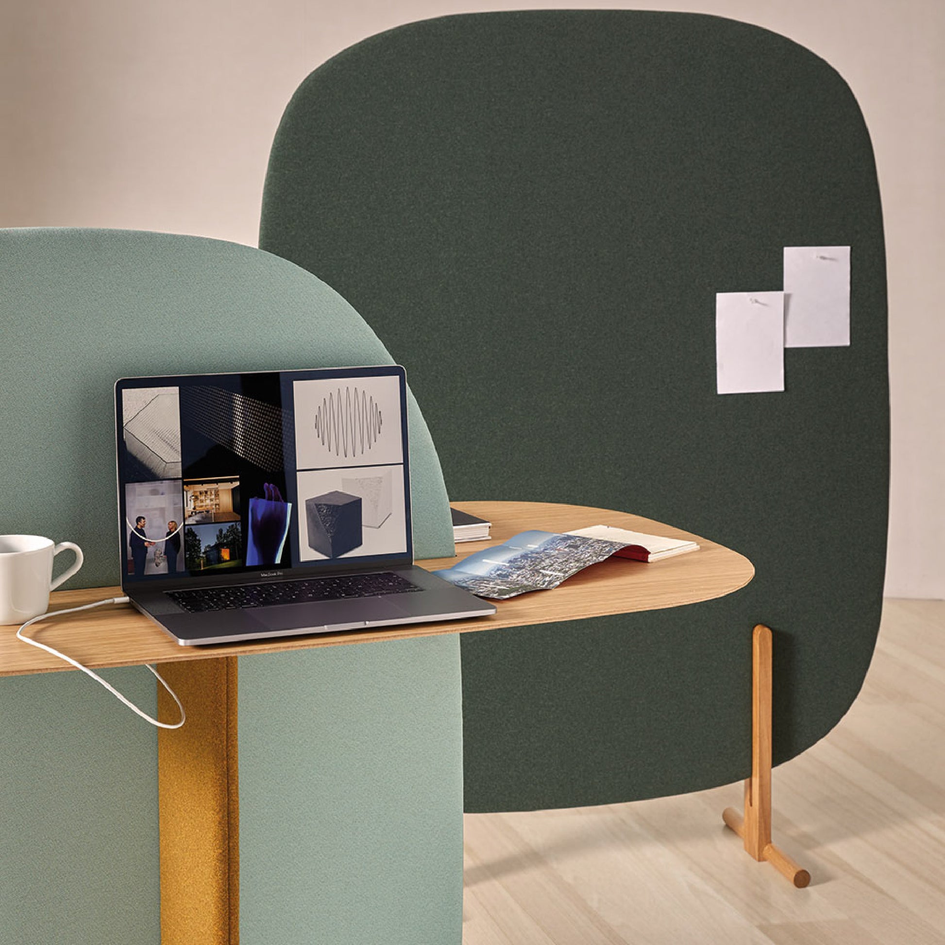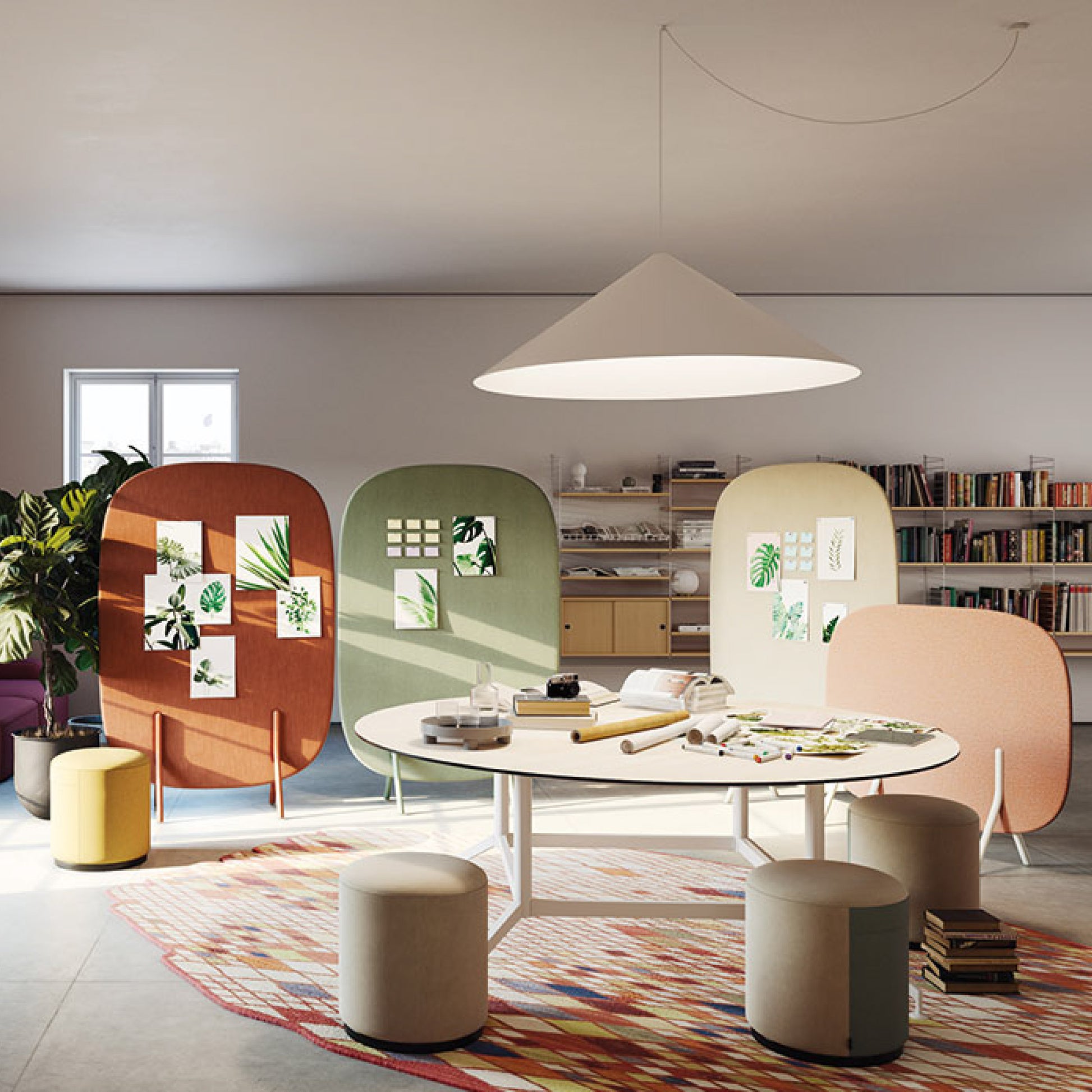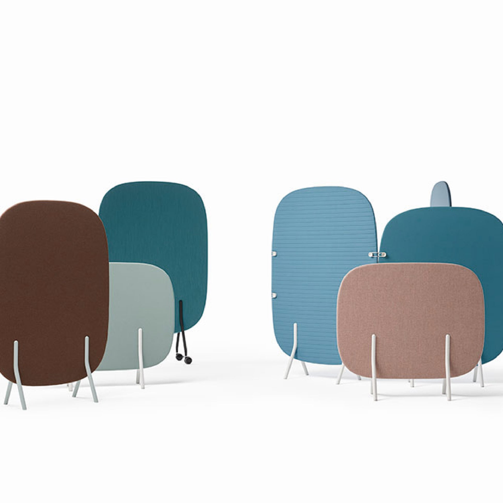 The Noray line consists of panels/dividers that help define and filter spaces, improving privacy and acoustic comfort in collaborative environments.