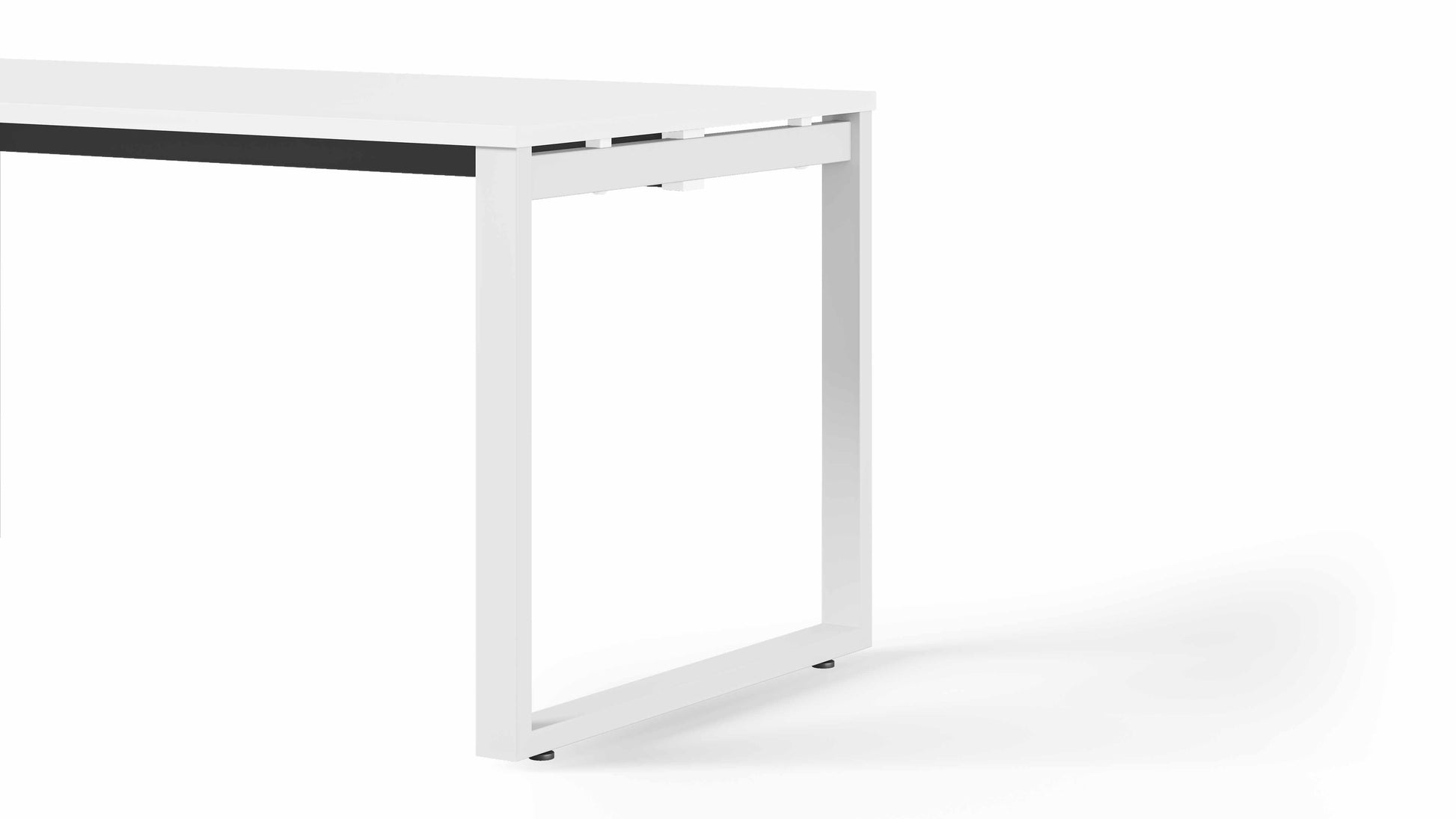 A system of minimalist and robust metal-framed office desks. Focused on stability, durability, and discreet aesthetics for efficient workstations in modern offices.